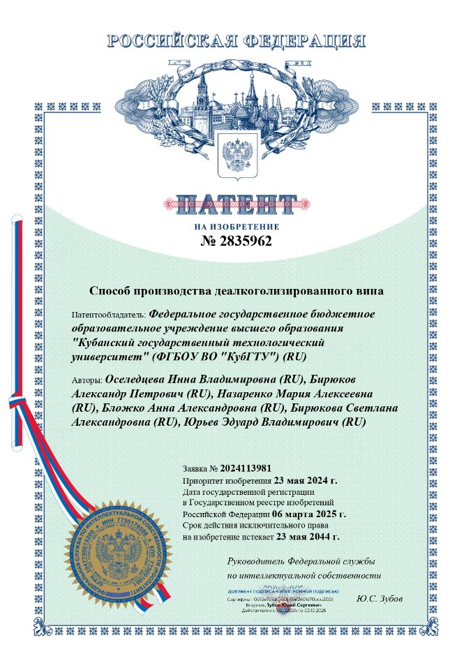 Комплект оборудования и технология защищены патентом на изобретение и позволяют производить технологический процесс с любым качеством виноматериала.
